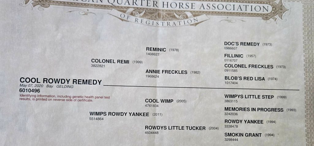 Bentley is out of sire Colonel Remi by Reminic (sire of earners of over $3,000,000) and Annie Freckles (NCHA money earner by the legendary Colonel Freckles) has NRHA earnings of over $10,000 and 24 AQHA Performance points. On the bottom side, Cool Wimp goes back to the great Wimpy’s Little Step whos offspring has broken countless records in the reining world.