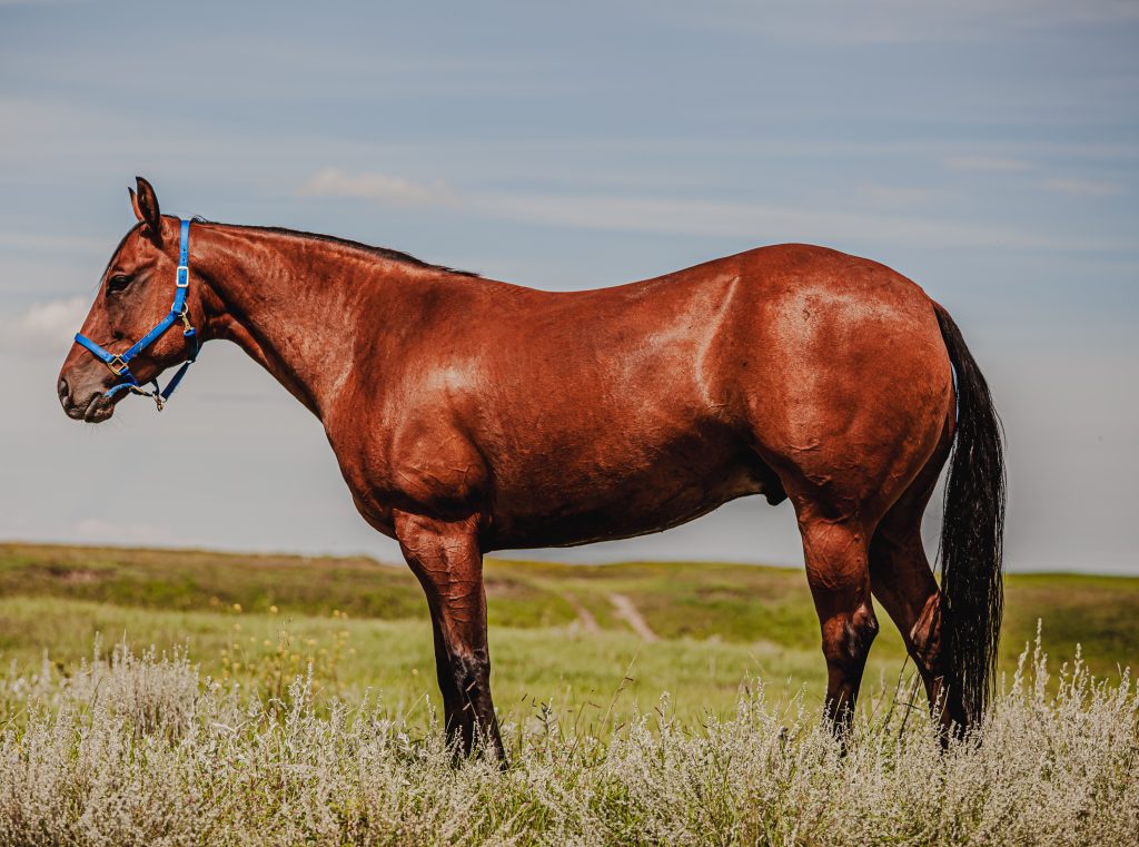 He started his career in a professional reining program in Canada and has extensive arena training. Bentley has lifetime NRHA earnings and has been successfully shown by a non-pro. He has a beautiful low head carriage, a natural stop, and effortless turnarounds, with that smooth-as-butter rocking chair lope everyone wants to sit.