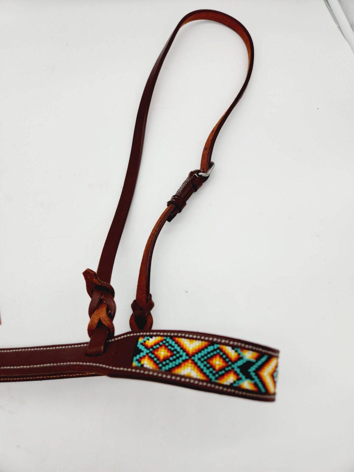 Ranch Hand is happy to offer high-quality crafted leather and beaded headstalls/bridles, tie downs/nosebands, dog collars and other tack. Choose from a variety of beautiful patterns and colors. stitching is reinforced to ensure durability and the hardware is stainless steel making it strong and rust-resistant. All of our headstalls and nosebands are made out of high-quality leather that is pre-oiled for a supple and soft feel.
