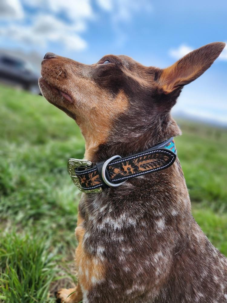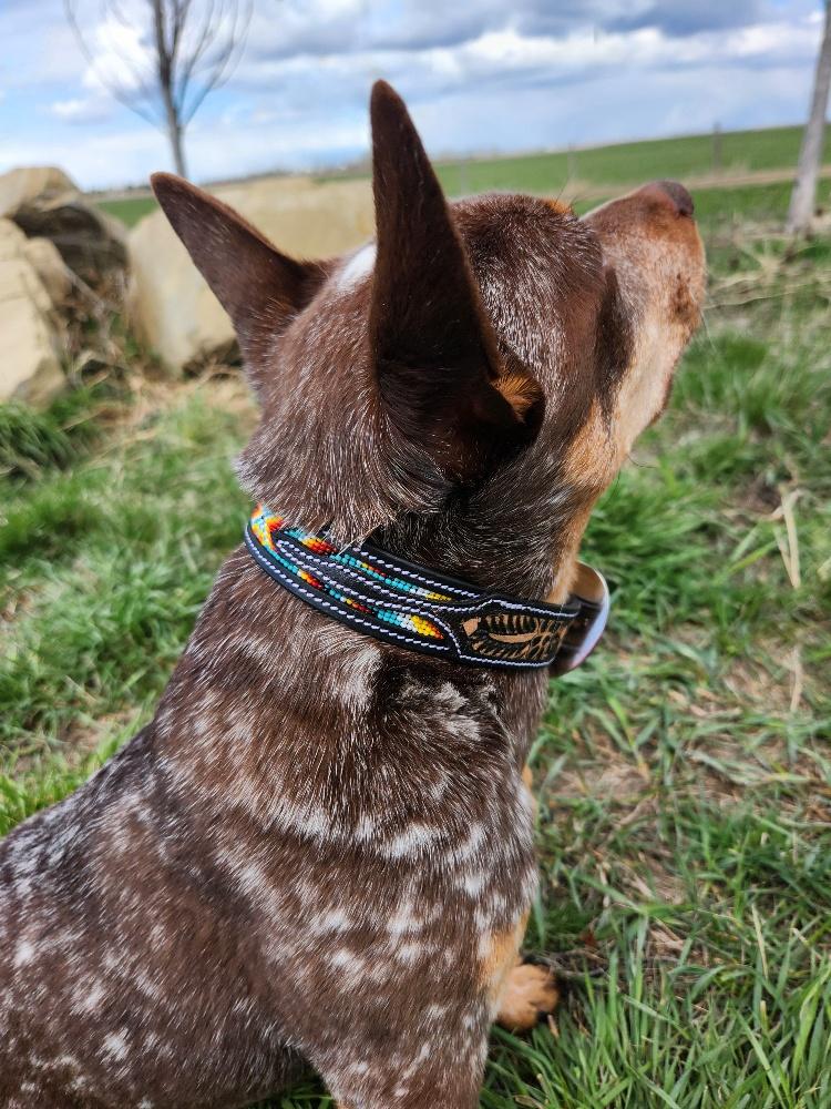 Give your dog a touch of elegance and durability with the Ranch Hand Navajo Spring Beaded Leather Dog Collar—a perfect blend of craftsmanship, comfort, and style.