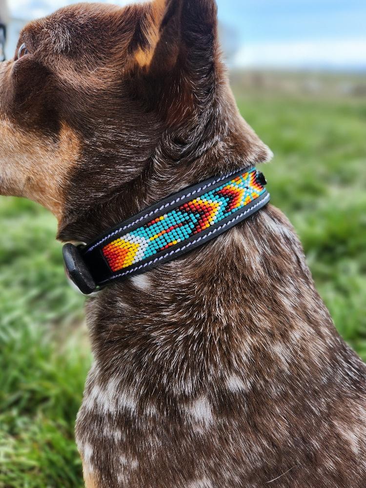 Leather Dog Collar- Navajo Spring- Beaded