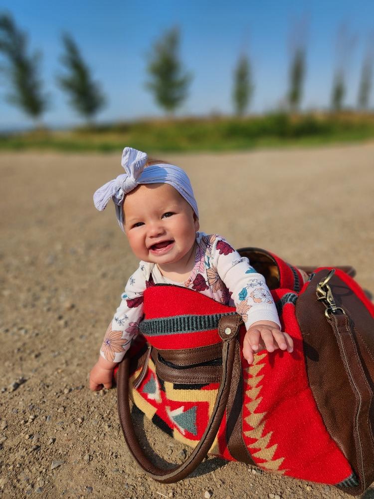 This Western duffel bag is great for any overnight adventure, trip to the grocery store, hitting the gym, or even as a luxurious diaper bag! It provides all the space required to store diapers, wipes, toys, and bottles. Who says you need a boring diaper bag? Step outside the box and get a baby bag that is the envy of other parents! Its unique unisex design makes it perfect for both Him and Her. This bag can be your everyday, over-the-shoulder or crossbody bag with its unique size. The front pocket is perfect for stashing items that you need quick access to, like a cell phone, keys, or boarding pass. Soft yet sturdy leather handles ensure that the Sante Fe Weekender Duffel Bag is comfortable to carry.