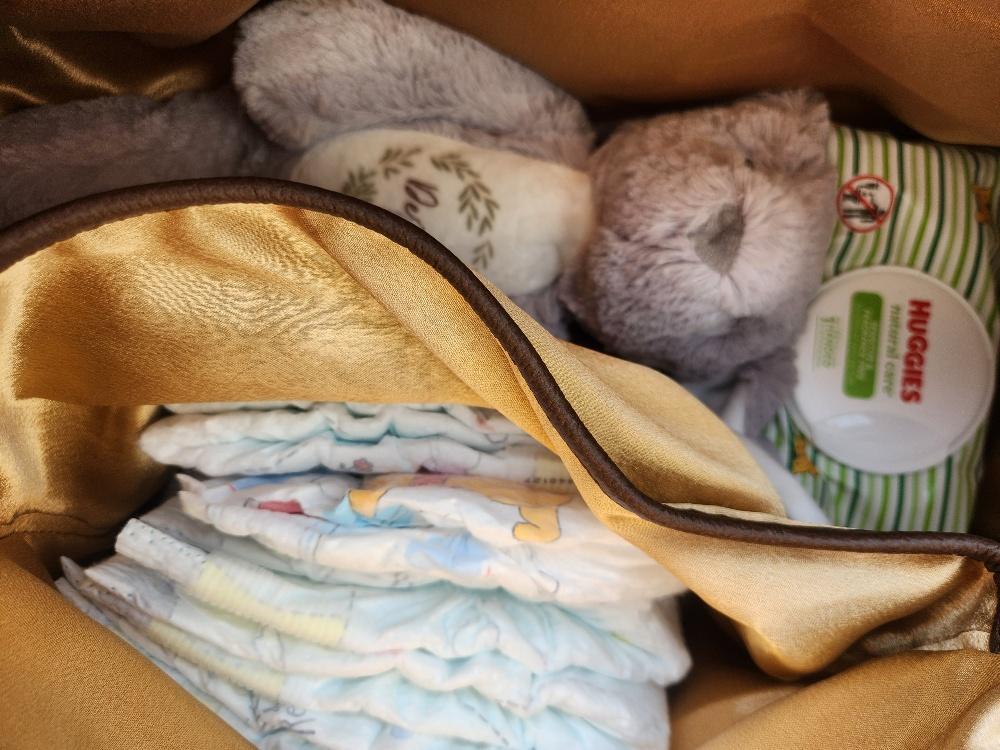 The interior boasts luxury with its gold satin lining, offering plenty of pockets and compartments to store all of your belongings. It includes one large open pocket ideal for storing cash, cards, or keys, plus a large zip pocket to make staying organized a breeze. The roomy interior is spacious enough to hold clothing and other travel essentials while the soft satiny lining protects even your most delicate items.
