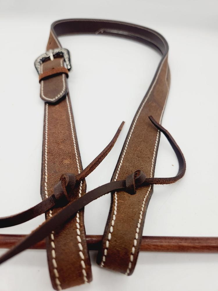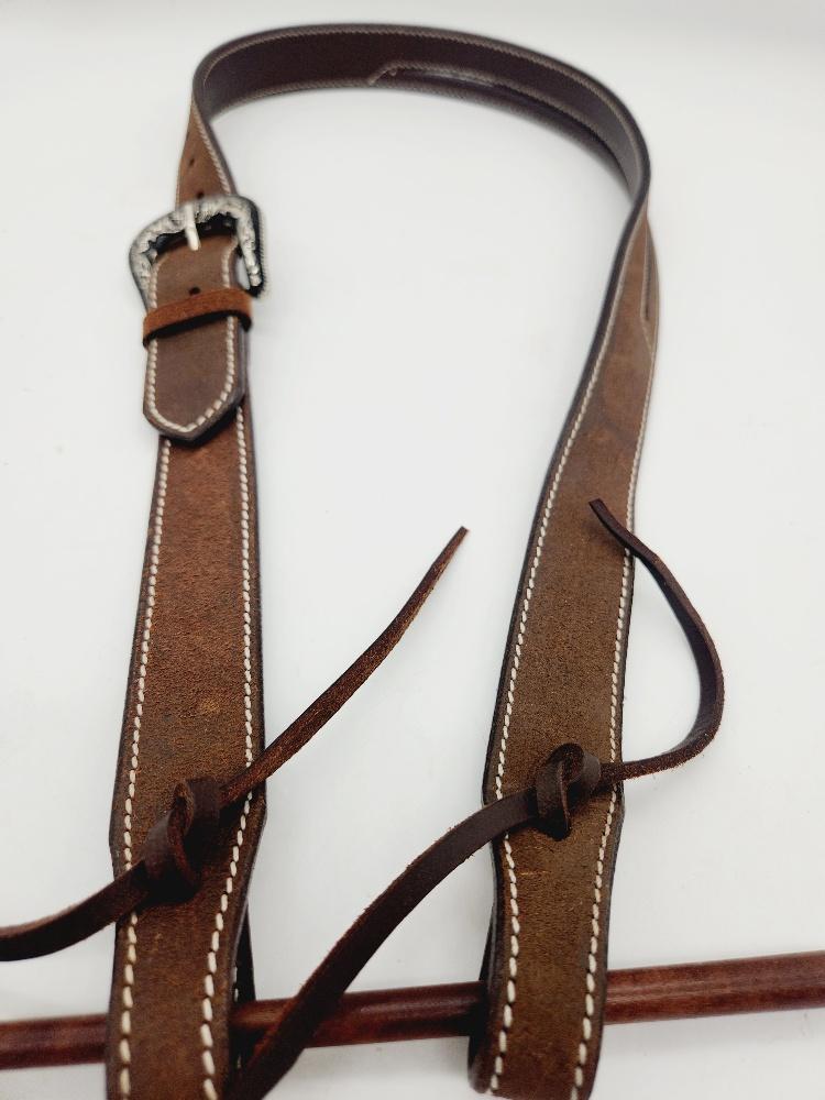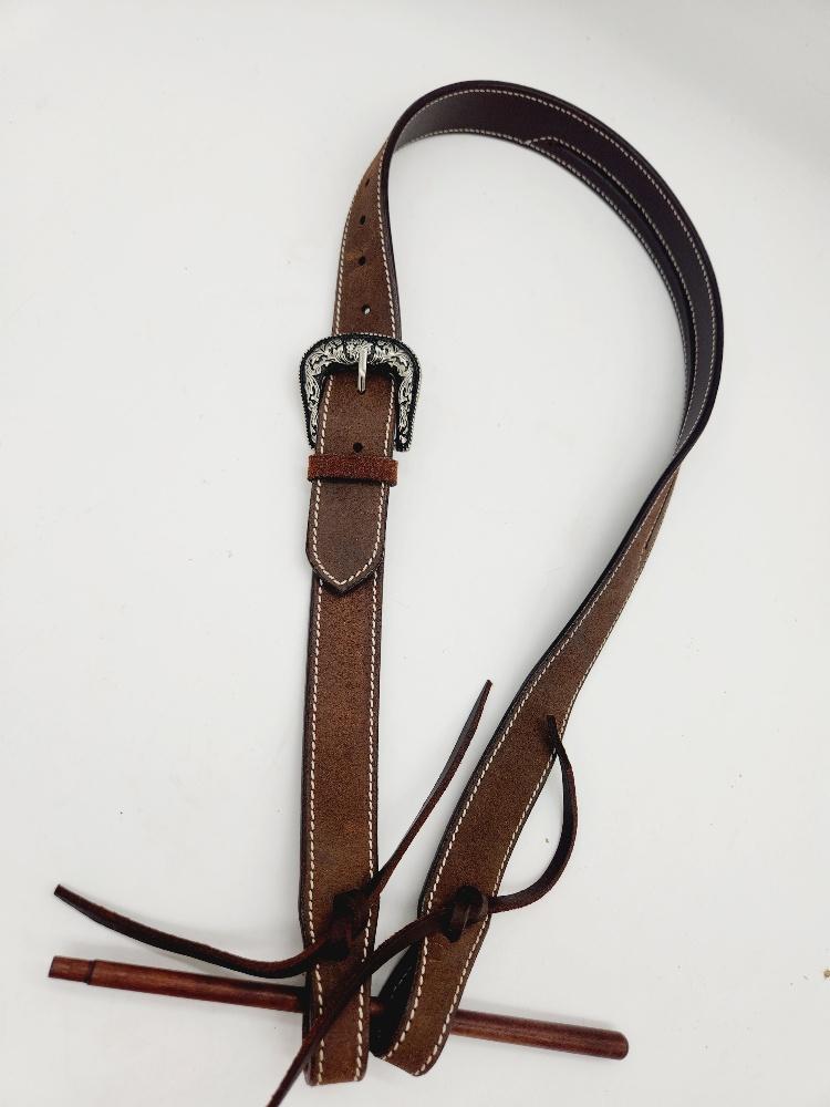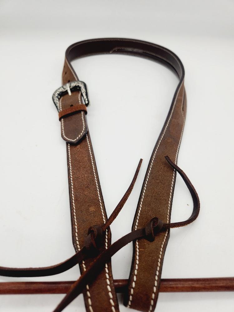 Handcrafted from chocolate colored rough out oiled harness leather for rugged, classic western style- The vaquero one ear headstall is timeless, simple and elegant and ready to hit the rodeo trail, show pen or the trail. The Vaquero splie ear headstall features jeremiah watt slot conchos on chocolate rough out leather that is pre-oiled to be soft and supple.